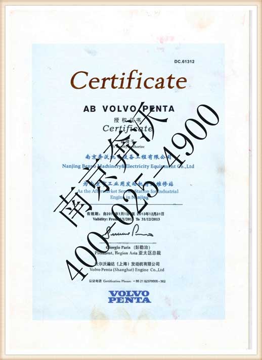 集團公司自成立以來,先后被法國西電、三菱重工、康明斯、MTU、強鹿等著名發動機及柴油發電機組企業授權為指定售后服務供應商,2010年又被沃爾沃遍達(VOLVO PENTA)授權為指定的發動機配件及售后服務代理商,全面負責區域的沃爾沃遍達(VOLVO PENTA)發動機銷售及質保維修服務、零配件供應等工作。